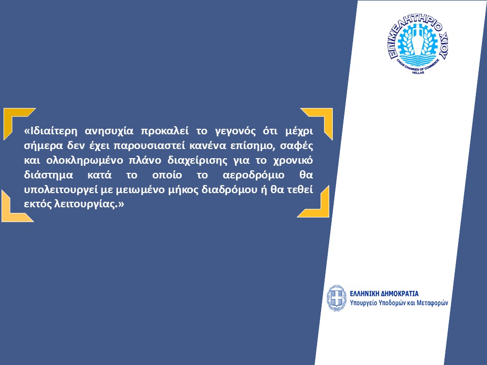 Ακολουθεί επιστολή του Επιμελητηρίου Χίου προς τον Υπουργό Υποδομών και Μεταφορών κ. Δήμα Χρίστο, με